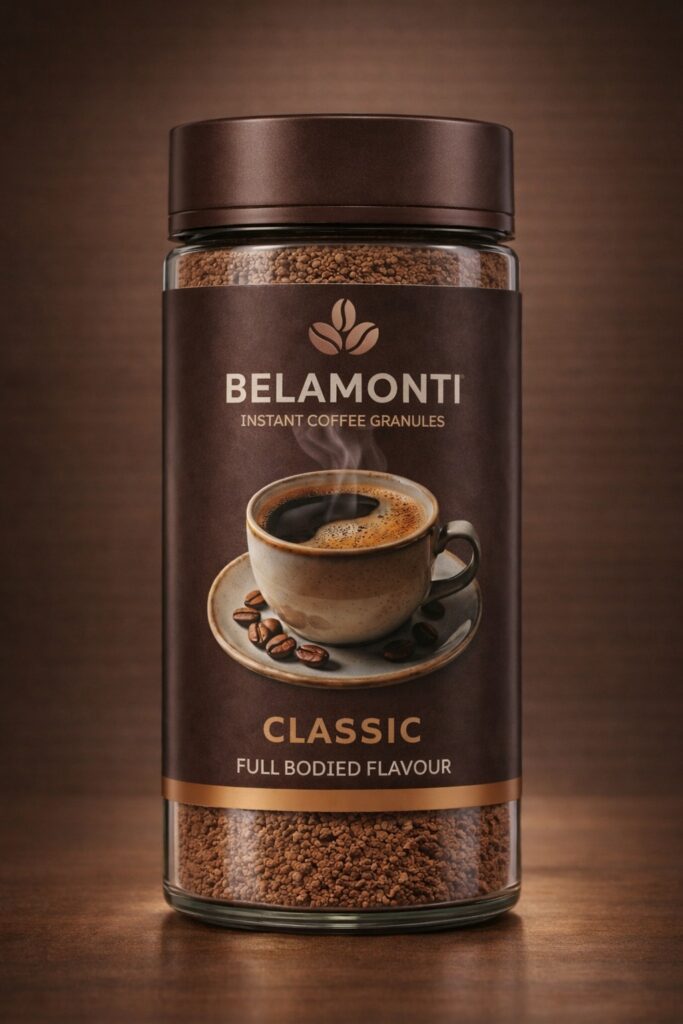 With multiple coffee variants and packaging formats, Belamonti required a cohesive visual identity that could scale across jars, tins, and future product lines while retaining a strong shelf presence.
